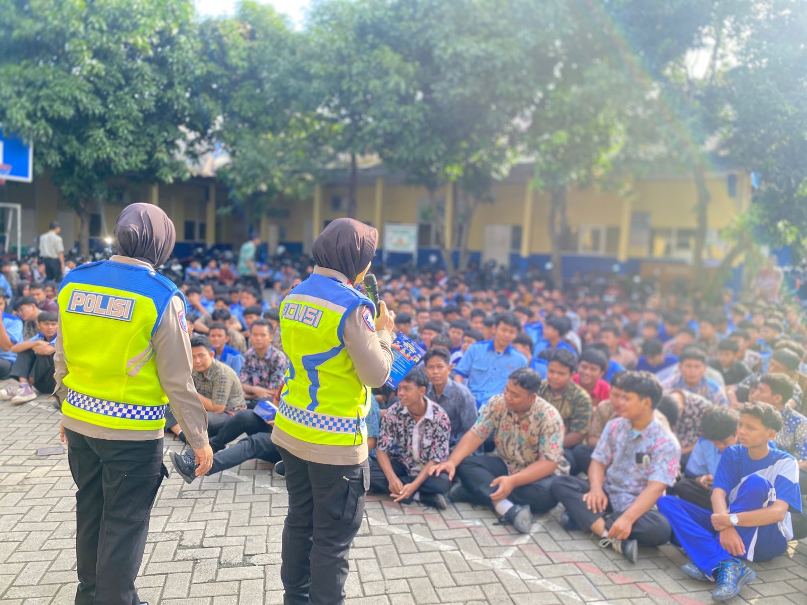 Kegiatan yang berlangsung di lingkungan sekolah yang berlokasi di Jalan Proklamasi, Kota Tangerang. Petugas memberikan edukasi langsung kepada para siswa terkait pentingnya tertib berlalu lintas, penggunaan helm standar, serta bahaya pelanggaran lalu lintas yang kerap dilakukan oleh pelajar.