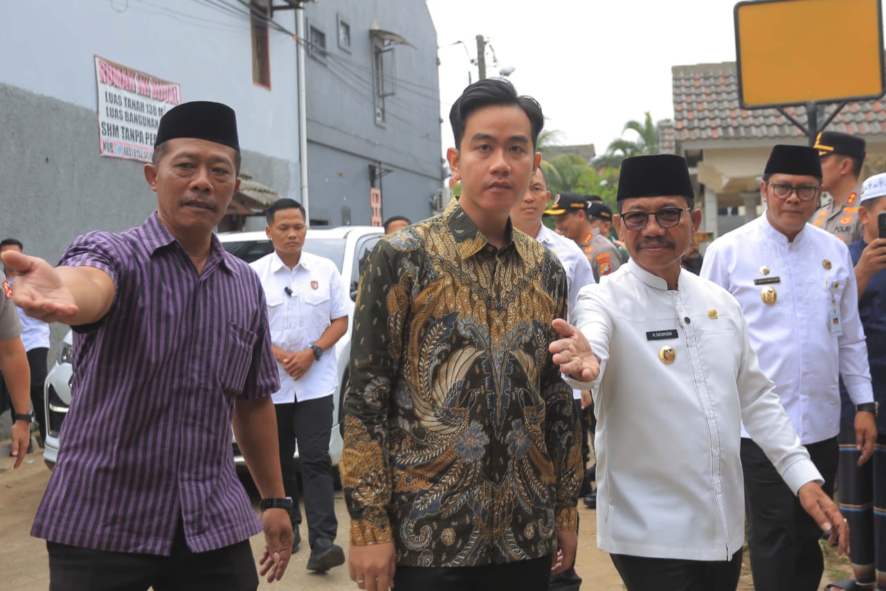 WANMEDIA.CO.ID, KOTA TANGERANG – Wakil Presiden Republik Indonesia, Gibran Rakabuming Raka, Jumat (11/07) meninjau langsung Komplek Ciledug Indah, Kecamatan Karang Tengah, Kota Tangerang yang beberapa waktu lalu banjir. Kunjungan dilakukan usai beliau menunaikan Salat Jumat berjamaah bersama masyarakat di wilayah tersebut.