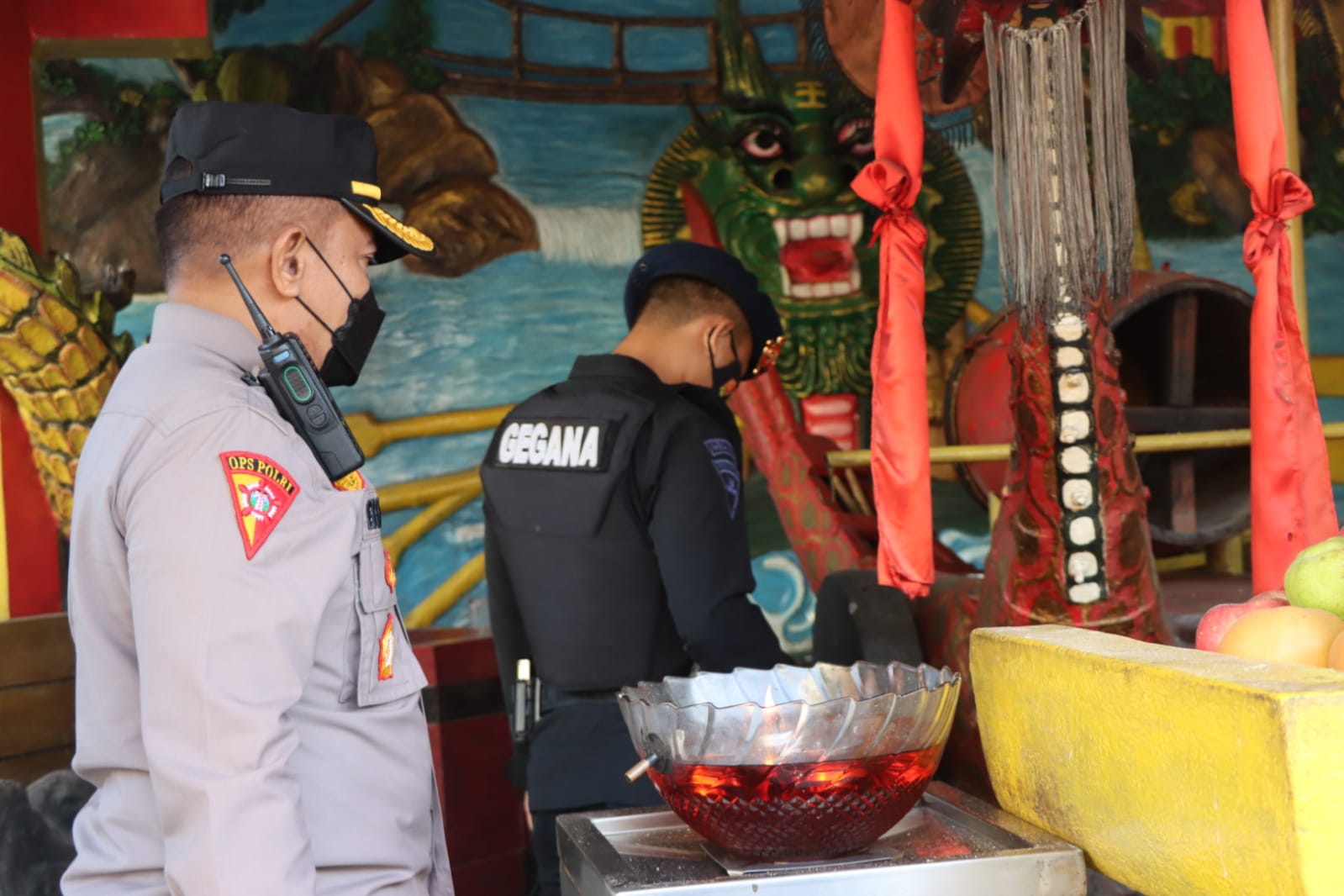 Setiap sudut ruangan di Vihara disisir untuk memastikan tidak ada gangguan saat peribadatan umat Buddha berlangsung di Kota Tangerang.