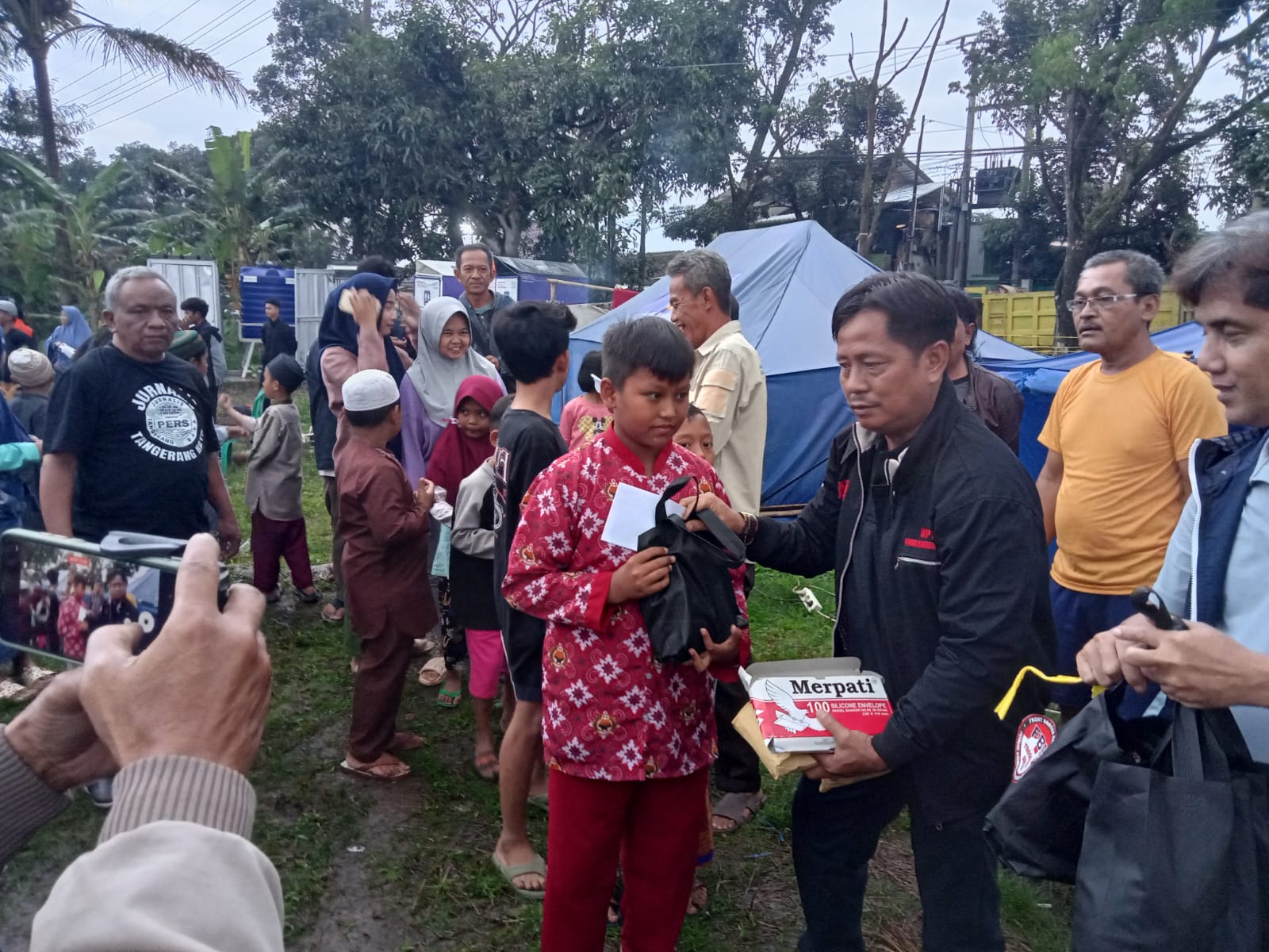 Di sana rombongan sudah disambut oleh Maman ketua RW 07 Desa Ciwalen dan Mukhtar selaku Ketua Posko Tenda Darurat.