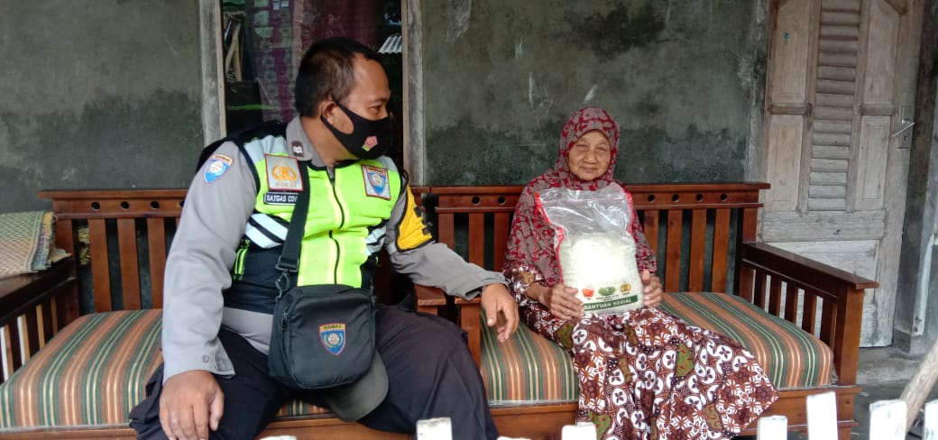 “Anggota Bhabinkamtibmas ini membagi kebahagiaan terhadap sesama dengan memberikan Bantuan berupa beras kepada warga desa binaan yang kurang mampu akibat dampak dari pandemic covid-19, mudah- mudahan dapat bermanfaat dan meringankan beban keluarganya.” tutur Sigit.