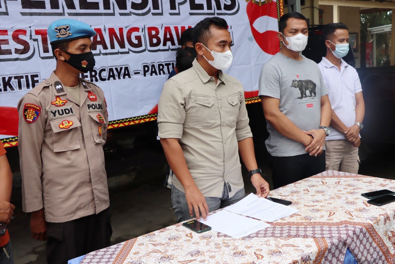 “Pelaku yang ditangkap oleh petugas kami ini merupakan seorang pria berinisial RN (40), berprofesi wiraswasta, warga Kampung Penawar Rejo, Kecamatan Banjar Margo, Kabupaten Tulang Bawang,” kata Kasat Reskrim, AKP Wido Dwi Arifiya Zaen, SIK, MH, mewakili Kapolres Tulang Bawang, AKBP Hujra Soumena, SIK, MH, yang didampingi Kanit Tipidter Satreskrim, Ipda Andy Ruswandi, SH, saat menggelar konferensi pers, Rabu (20/04/2022), pukul 13.00 WIB, di depan kantor Satreskrim Polres setempat.