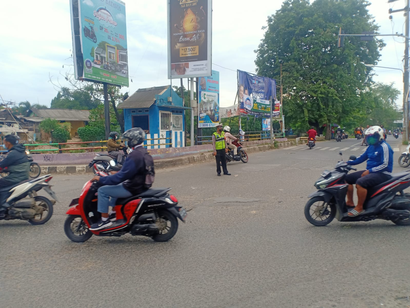 WANMEDIA.CO.ID, TANGERANG.- Piket Siaga Polsek Rajeg Polresta Tangerang Polda Banten Bripka Rusdi bersama Satpol PP Kecamatan Rajeg melaksanakan pelayanan pengaturan arus lalu lintas diperempatan Kukun Desa Mekarsari Kecamatan Rajeg, Senin (15/11/2021) Pagi.
