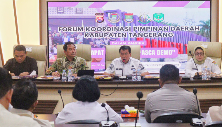 WANMEDIA.CO.ID, TANGERANG – Pemerintah Kabupaten (Pemkab) Tangerang menggelar rapat koordinasi bersama Forum Koordinasi Pimpinan Daerah (Forkopimda) Kabupaten Tangerang pasca terjadinya aksi demonstrasi di sejumlah wilayah dan perkembangan yang terus berkembang saat ini di Ruang Rapat Wareng, Gedung Bupati Tangerang, Rabu (10/9/2025).