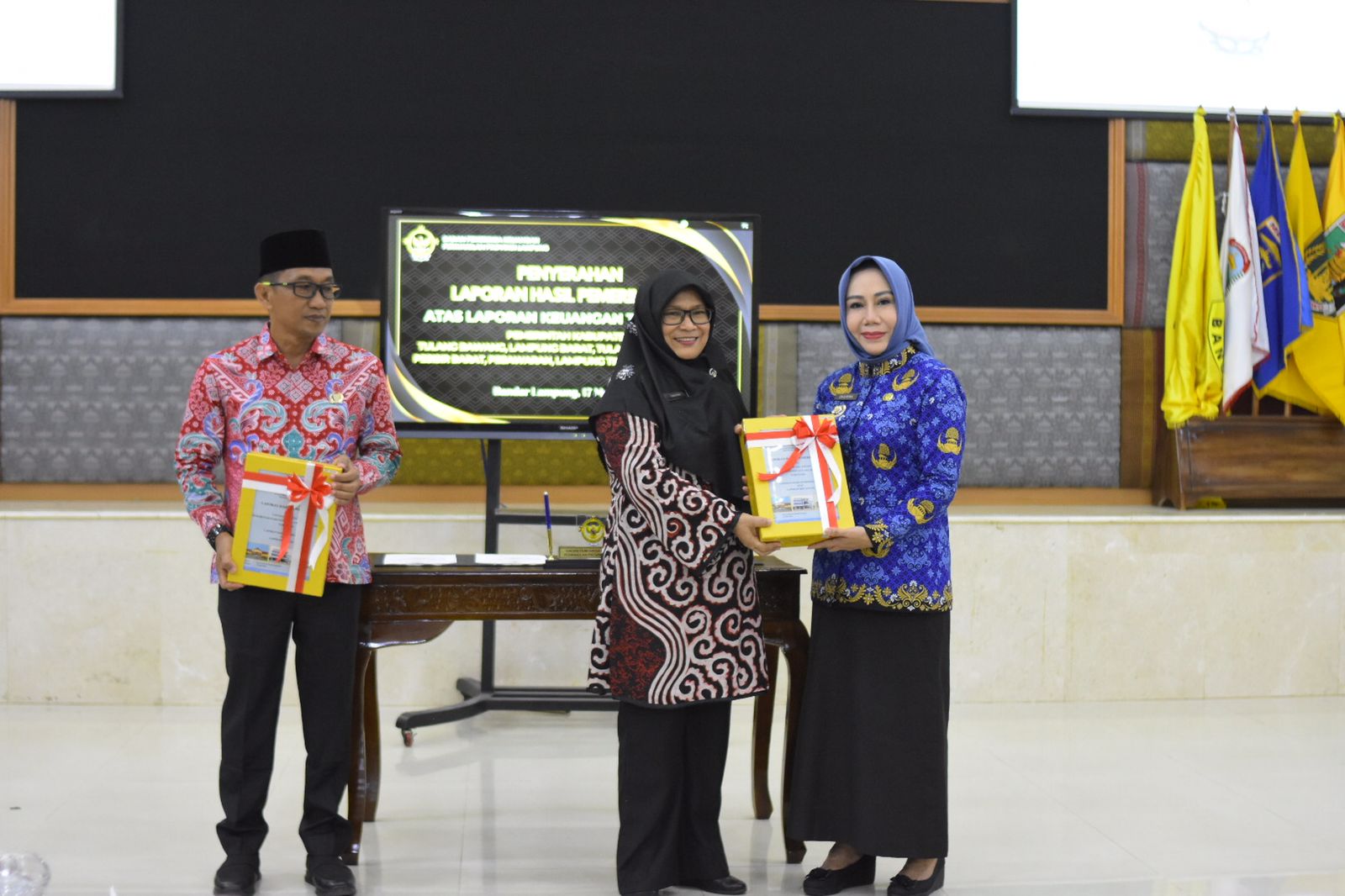 WANMEDIA.CO.ID, TUBABA – Kepala Badan Pemeriksa Keuangan (BPK) Perwakilan Lampung, Yusnadewi S.E., M.Si., Ak., CA., CSFA menyerahkan Laporan Hasil Pemeriksaan (LHP) dengan opini Wajar Tanpa Pengecualian (WTP) kepada Pemkab Tulang Bawang Barat (TUBABA), pada Rabu (17/05/2023) bertempat di auditorium BPK, Bandar Lampung.
