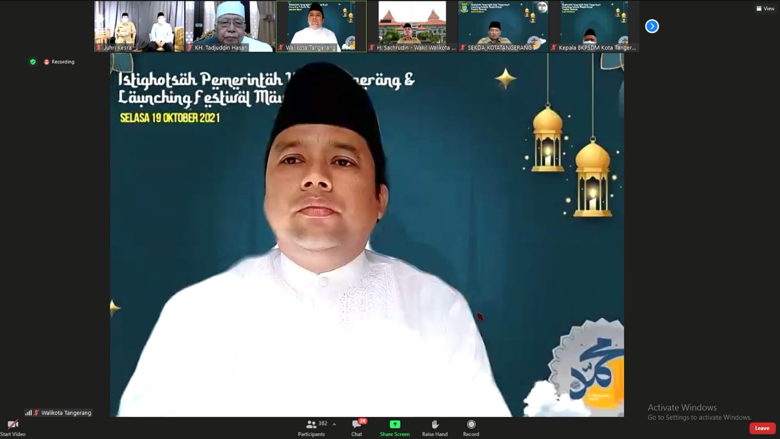 Wali Kota Tangerang H. Arief R. Wismansyah secara daring meresmikan dibukanya festival yang mengusung konsep pemanfaatan media sosial sebagai sarana penyebarluasan nilai – nilai Islami, setelah sebelumnya Festival Maulid tak digelar karena pandemi Covid-19 yang melanda.