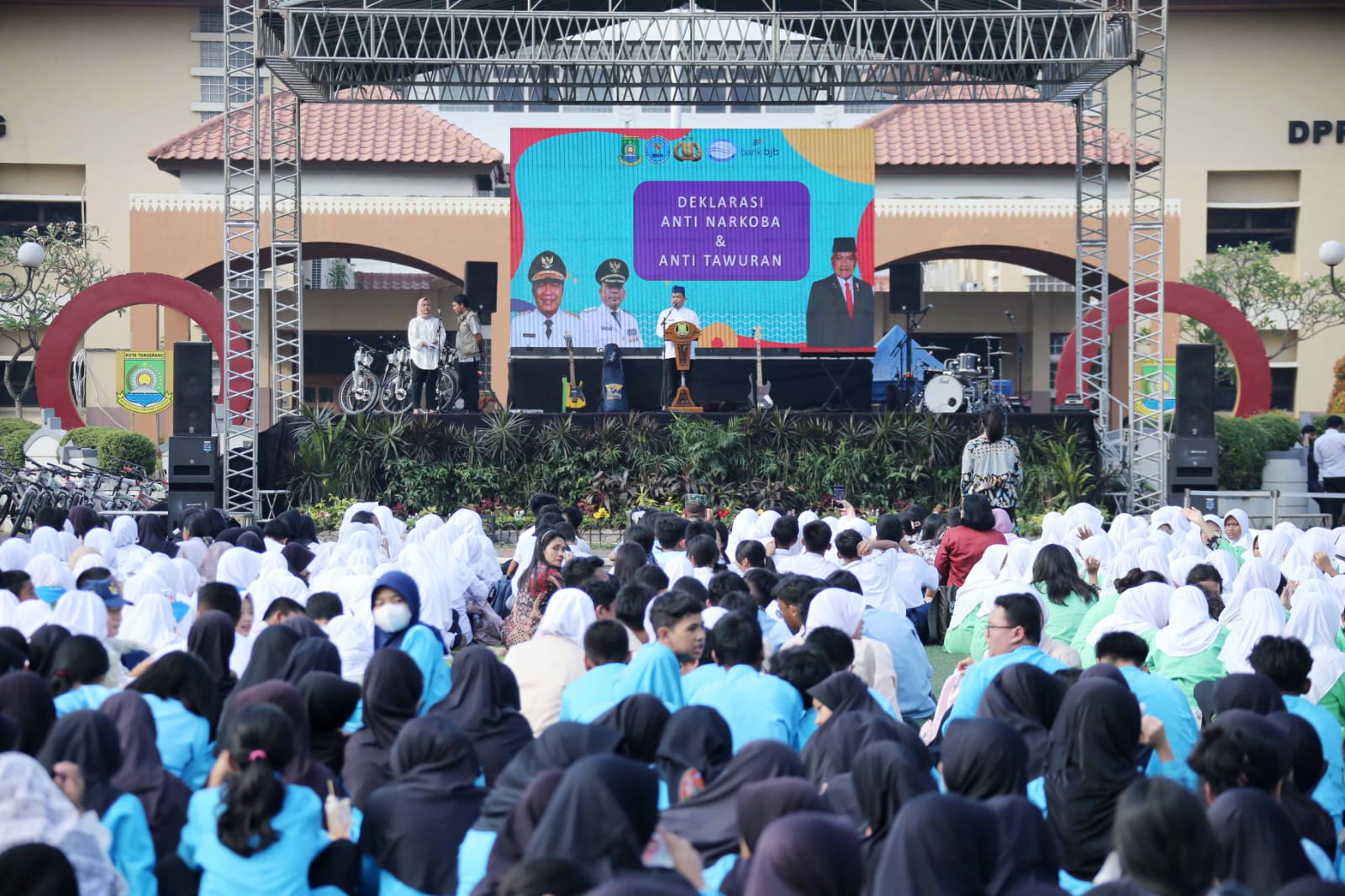 Oleh karena itu, kata Pj, Pemkot mengambil langkah tegas dengan melibatkan para pelajar sebagai agen perubahan. “Melalui deklarasi kita melibatkan 5000 pelajar untuk menjadi garda depan dalam perang melawan narkoba serta menarasikan tolak narkoba dan tawuran,” ujar Pj Wali Kota.