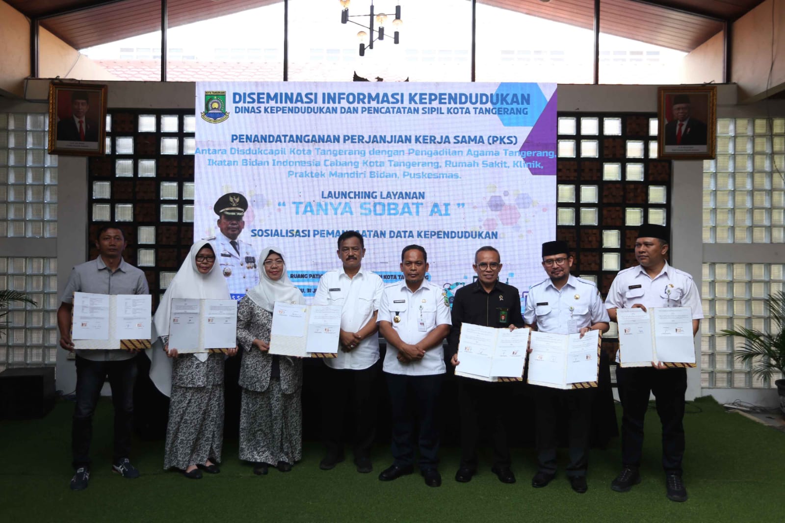 Dalam kesempatan ini juga, Dr. Nurdin, turut menyaksikan penandatanganan Perjanjian Kerja Sama (PKS) antara Disdukcapil dengan Pengadilan Agama Tangerang, Ikatan Bidan Indonesia cabang Kota Tangerang, rumah sakit, klinik, praktik mandiri bidan, dan Puskesmas.