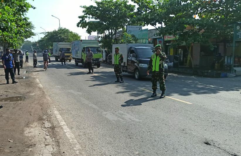 Tampak Petugas gabungan TNI – Polri, Satpol PP, Damkar, Dinas Perhubungan (Dishub), hingga Dinas Kesehatan Kabupaten Madiun melakukan operasi yustisi dan penyekatan dibeberapa pintu masuk Kabupaten Madiun, Jumat (12/03/2021).