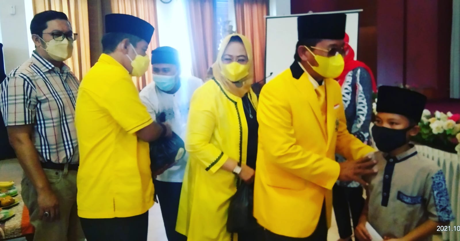 Lanjutnya Sachrudin bersama pengurus DPD Golkar memberikan santunan anaka -anak yatim di kelurahan Sangiang Jaya kecamatan Periuk. (Saripudin)