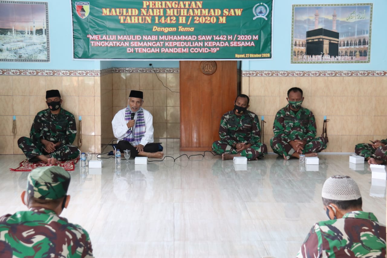 Peringatan Maulid Nabi Muhammad SAW yang di Laksanakan Kodim 0805/Ngawi kali ini mengambil tema “Melalui Maulid Nabi Muhammad SAW 1442 H/2020 M Kita Tingkatkan Semangat Kepedulian Kepada Sesama Di Tengah Pandemi Covid 19”.