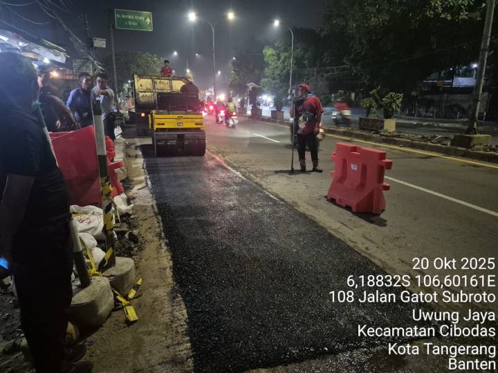 WANMEDIA.CO.ID, KOTA TANGERANG – Perumda Tirta Benteng (TB) Kota Tangerang melakukan perbaikan jalan di sejumlah titik yang terdampak pekerjaan galian pipa jaringan distribusi air, di Jalan Gatot Subroto, Kota Tangerang, Senin (20/10) malam.