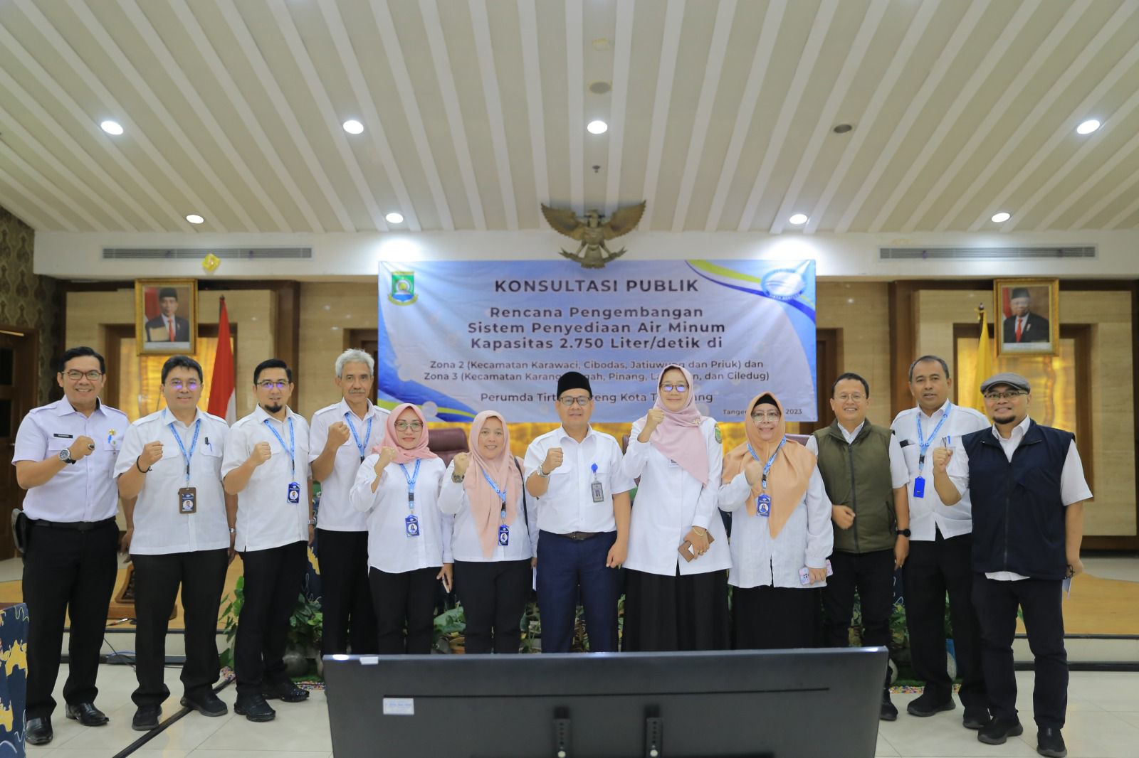 WANMEDIA.CO.ID, KOTA TANGERANG – Perusahaan Umum Daerah (Perumda) Tirta Benteng baru saja menggelar forum konsultasi publik terkait rencana pengembangan Sistem Penyediaan Air Minum (SPAM) berkapasitas produksi 2.750 liter/detik. Proyek pengembangan SPAM ini akan malayani masyarakat Kota Tangerang yang berada di Zona 2 (Kecamatan Karawaci, Cibodas, Jatiuwung, dan Periuk), dan di Zona 3 (Kecamatan Karang Tengah, Pinang, Larangan, dan Ciledug). Forum yang digelar di Ruang Akhlakul Karimah, Pusat Pemerintahan (Puspem) Kota Tangerang pada siang hari ini diikuti oleh segenap lapisan masyarakat, mulai dari Camat, Lurah, sampai RT/RW di berbagai wilayah yang akan dilalui proyek pengembangan ini.