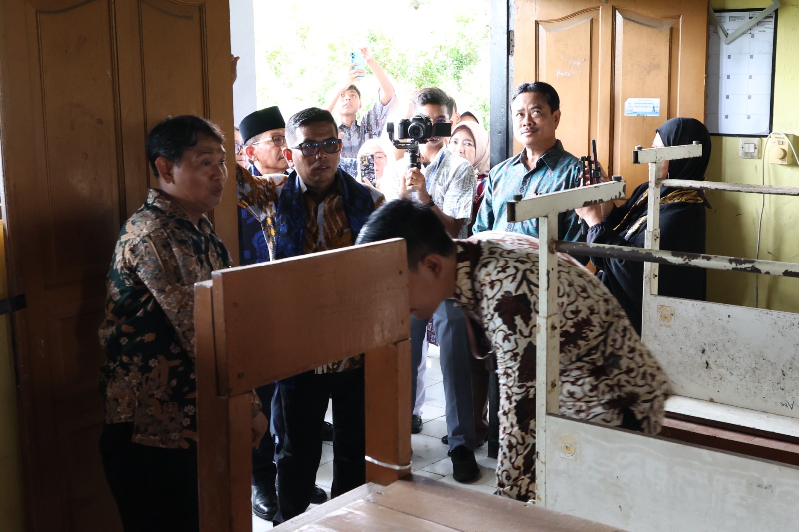 Peninjauan dilakukan pasca ambruknya plafon atau langit-langit salah satu ruang kelas akibat hujan deras dan angin kencang. Dalam kunjungannya, ia menegaskan, pentingnya perbaikan segera agar proses belajar mengajar tidak terganggu.