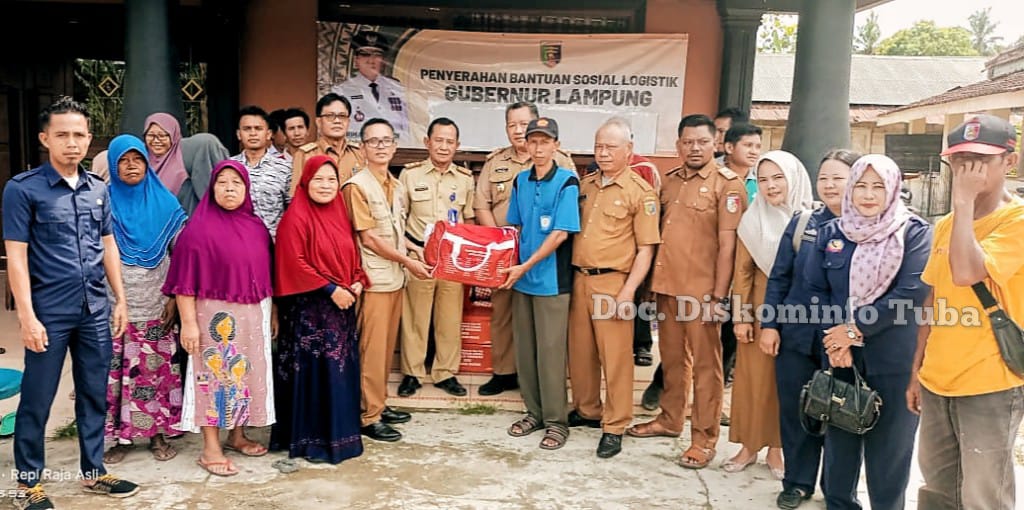 Dalam Kesempatan ini Plt. Kepala Dinas Sosial Kabupaten Tulang Bawang Binhar MS,SE menyerahkan bantuan logistic dari Gubernur Lampung berupa Makanan Siap Saji, Matrass, Terpal, Selimut, Perlengkapan Bayi (Kidware) Paket Sandang, Peralatan Footfer, Tenda Gulung dan Peralatan Dapur