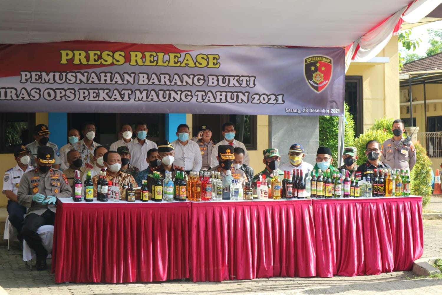 Kapolda Banten Irjen Pol Dr Rudy Heriyanto mengatakan pemusnahan miras ini merupakan hasil operasi pekat maung 2021, “Hari ini Polda Banten melakukan pemusnahan puluhan ribu botol minuman keras (Miras) yang dilaksanakan hasil dari operasi pekat maung 2021 sejak 14 Desember 2021 hingga 22 Desember 2021, operasi Ini sebagai bentuk keseriusan Polda Banten dalam upaya memerangi penyakit masyarakat, seperti yang diketahui minuman keras merupakan salah satu penyebab timbulnya gangguan kamtibmas,”kata Rudy Heriyanto.