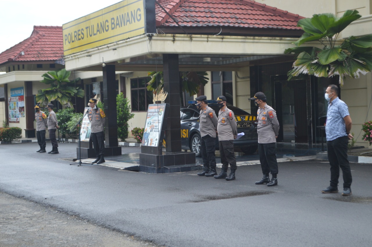 Sebelum memulai kegiatan pengamanan, Kapolres Tulang Bawang AKBP Andy Siswantoro, SIK, memimpin langsung apel kesiapan yang diikuti oleh personel Polres, TNI dan Sat Pol PP, hari Kamis (24/12/2020), pukul 16.40 WIB, di lapangan Mapolres setempat.