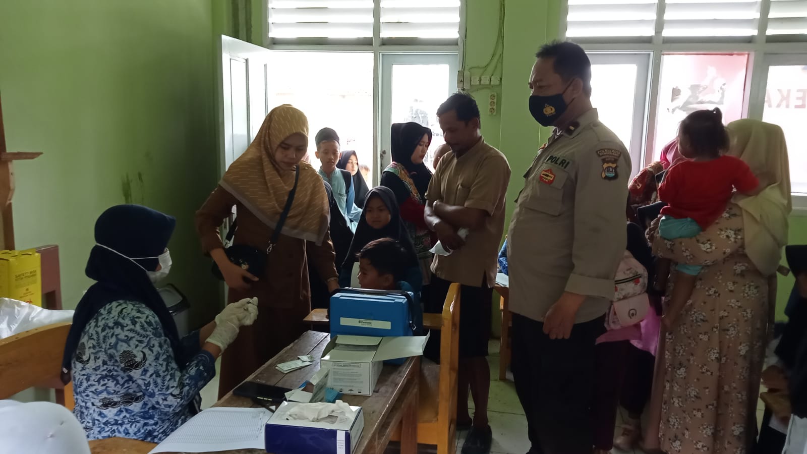 Kegiatan Vaksinasi tersebut dipimpin oleh Kapolsek Kronjo Polresta Tangerang Akp Sri Raharja, SH., didampingi Kanit Binmas Ipda Yusuf Supriyadi guna memantau secara langsung pelaksanaan Vaksinasi usia 6 – 11 tahun di MI Raudhatul Aulad Al Hidayah tersebut.