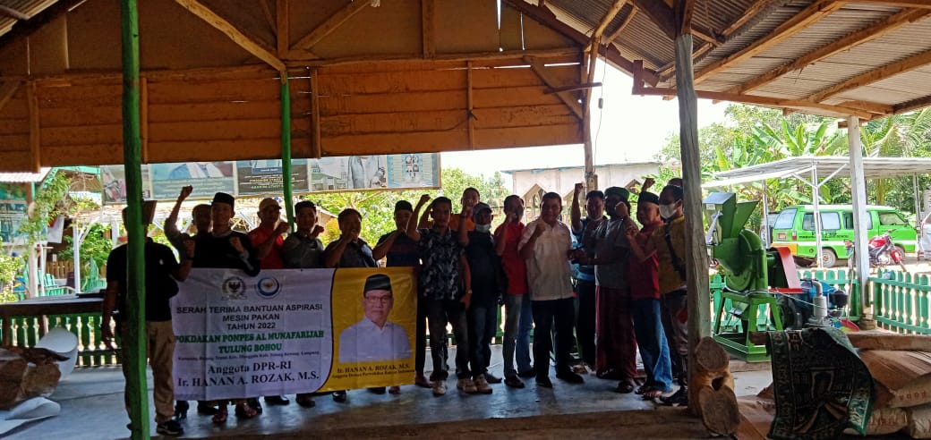 Lanjut Ky. Ahmad Al-Habib menjelaskan, sekitar tahun 2019 dirinya mengirim proposal ke Dinas Perikanan Kabupaten Tulang Bawang dan Alhamdulillah Tahun ini melalui Aspirasi Pak Ir.Hanan A. Rozak, M.S selaku Anggota DPR -RI memberikan bantuan berupa dua unit mesin pakan ikan merek Kubota dengan kapasitas produksi 200 Kg/Jam.