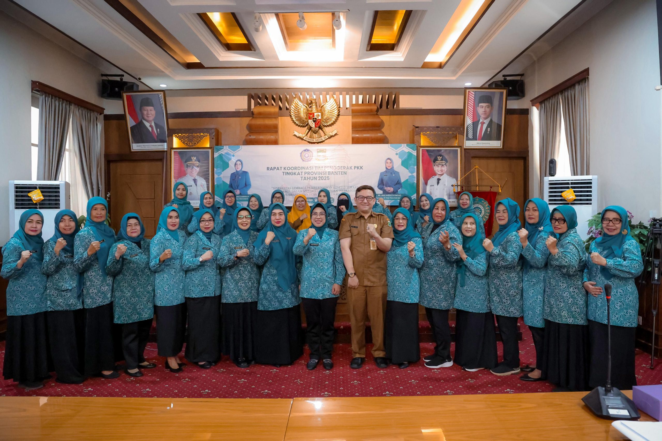 WANMEDIA.CO.ID, SERANG – Ketua Tim Penggerak Pemberdayaan dan Kesejahteraan Keluarga (TP PKK) Provinsi Banten, Tinawati Andra Soni, membuka Rapat Koordinasi TP PKK Provinsi Banten Tahun 2025 di Gedung Negara Provinsi Banten, Jalan Brigjen KH Syam’un Nomor 5, Kota Serang, Selasa (29/7/2025). Rakor dilaksanakan untuk memperkuat sinergi antar TP PKK Provinsi Banten dengan TP PKK Kabupaten/Kota dalam menjalankan 10 program pokok PKK secara lebih efektif.