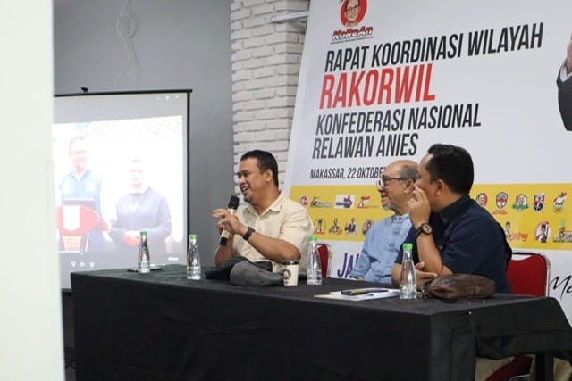 Hari Sabtu, 22 Oktober 2022 di sebuah ruang pertemuan di kota Makassar, Konfederasi Nasional Relawan Anies melaksanakan Rakowil I dari 34 Rakowil yang direncanakan.