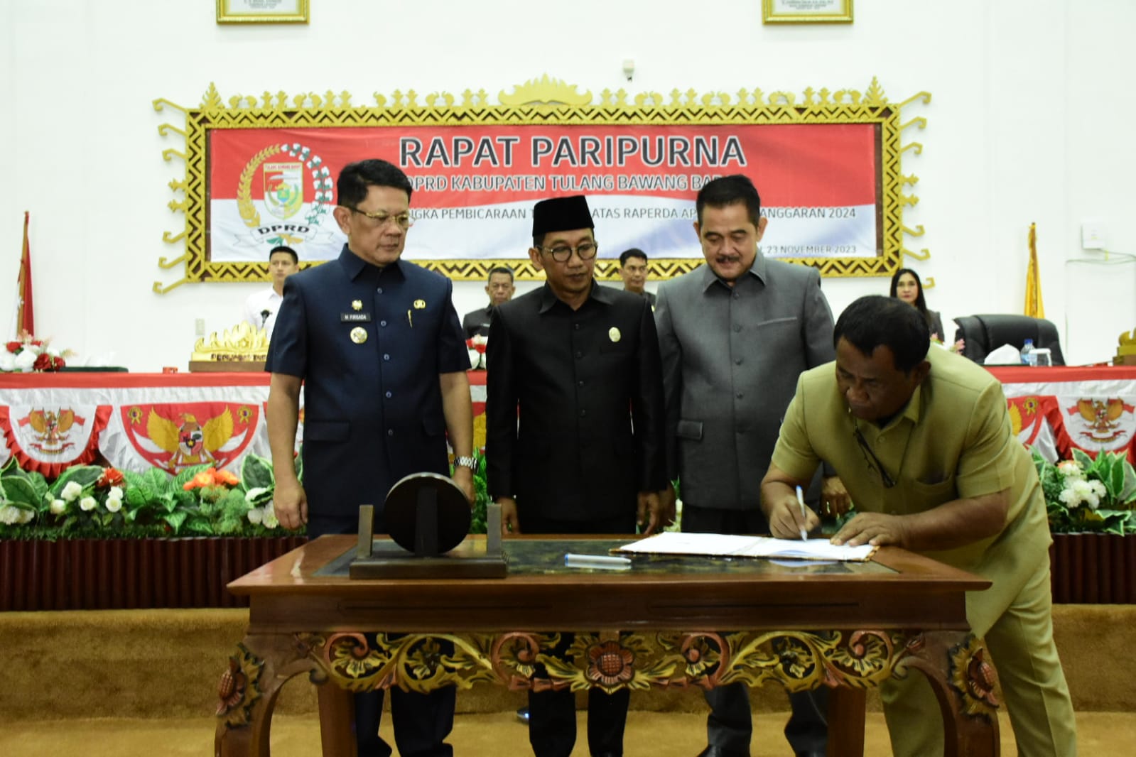 Saya berharap kita dapat bersama-sama melakukan pengawasan dalam pelaksanaan seluruh program kebijakan dan kegiatan yang tercantum pada Raperda tentang APBD Tahun Anggaran 2024 yang telah disepakati ini agar dapat berjalan lancar dan tepat sasaran, sehingga bisa membawa kemajuan dan kesejahteraan bagi seluruh masyarakat Kabupaten Tubaba ,” tandasnya.