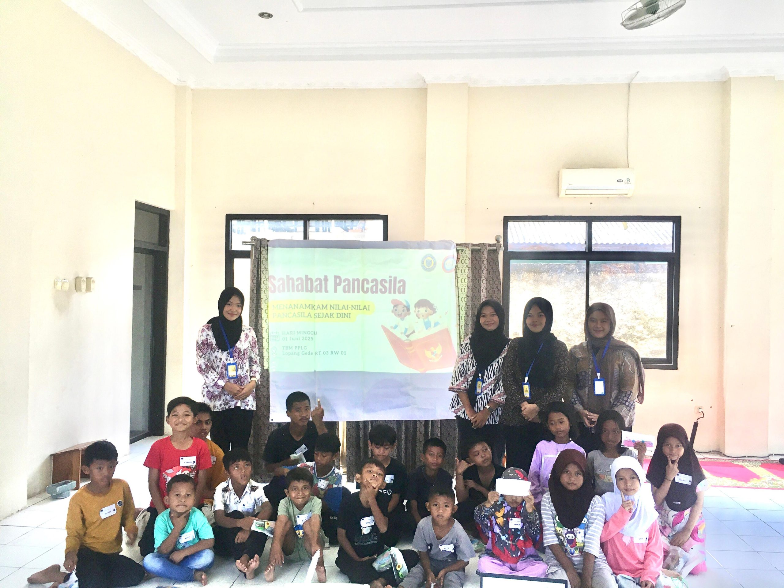 Kegiatan yang diikuti sekitar 20 anak ini berlangsung meriah dengan suasana belajar yang santai dan menyenangkan. Anak-anak dikenalkan pada lima sila Pancasila, mulai dari lambang, bunyi sila, hingga contoh pengamalan dalam kehidupan sehari-hari.