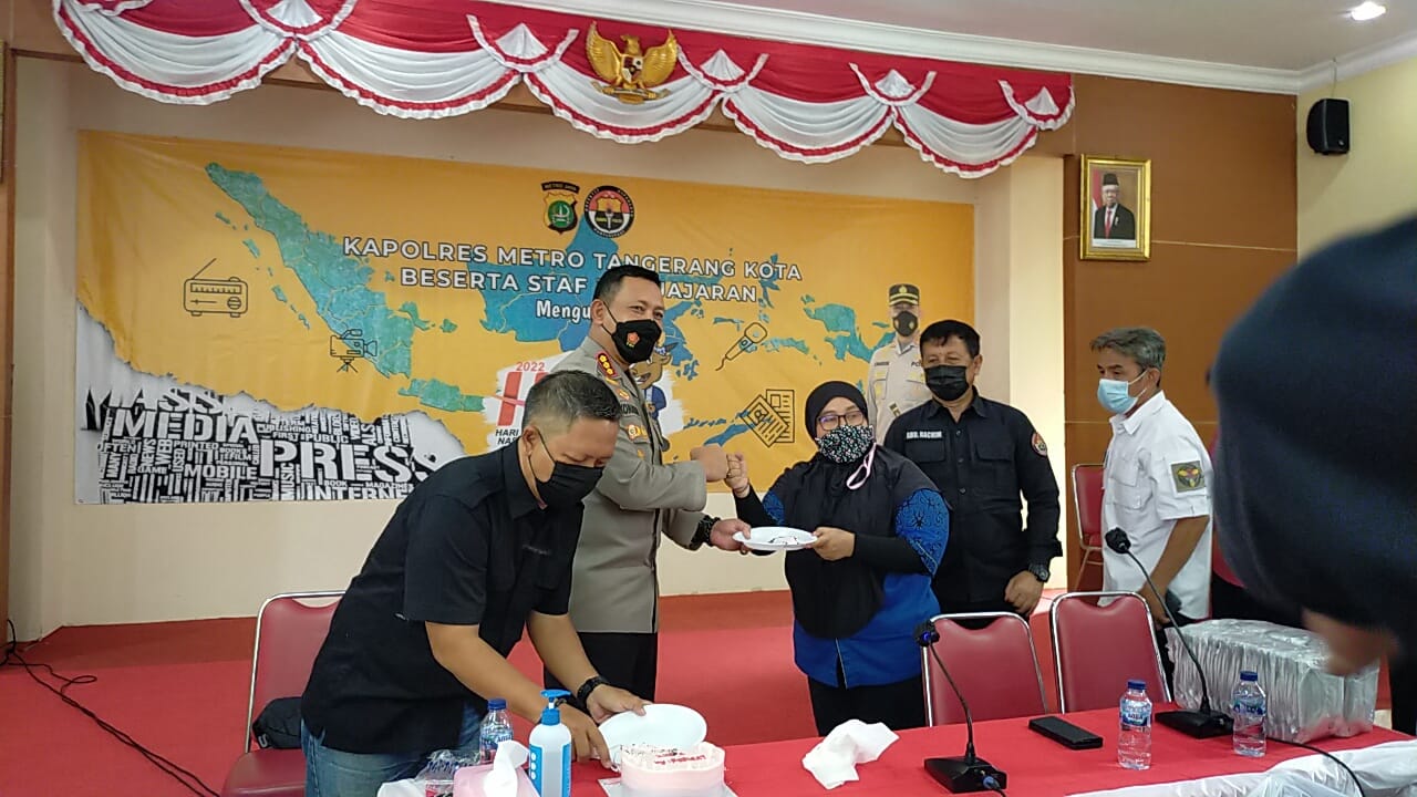 Acara berlangsung di Aula Mapolres Metro Tangerang Kota, Rabu (9/2/2022). Selain ramah tamah dan potong kue, acara tersebut juga diakhiri dengan pemotongan tumpeng yang diserahkan oleh Kapolres secara simbolis kepada para ketua organisasi wartawan.