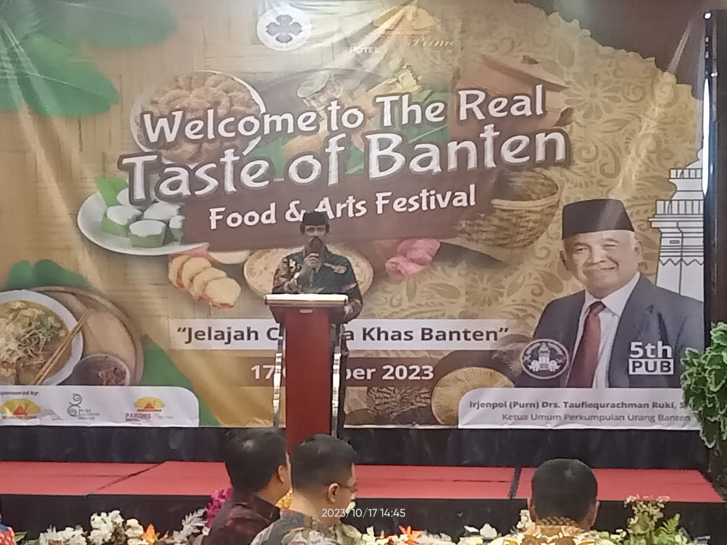 Pertama Program Banten Food dan Arts Festival, yang dilaksanakan hari ini, Selasa 17 Oktober 2023, di Grand Ballroom Hotel Pakons Prime.