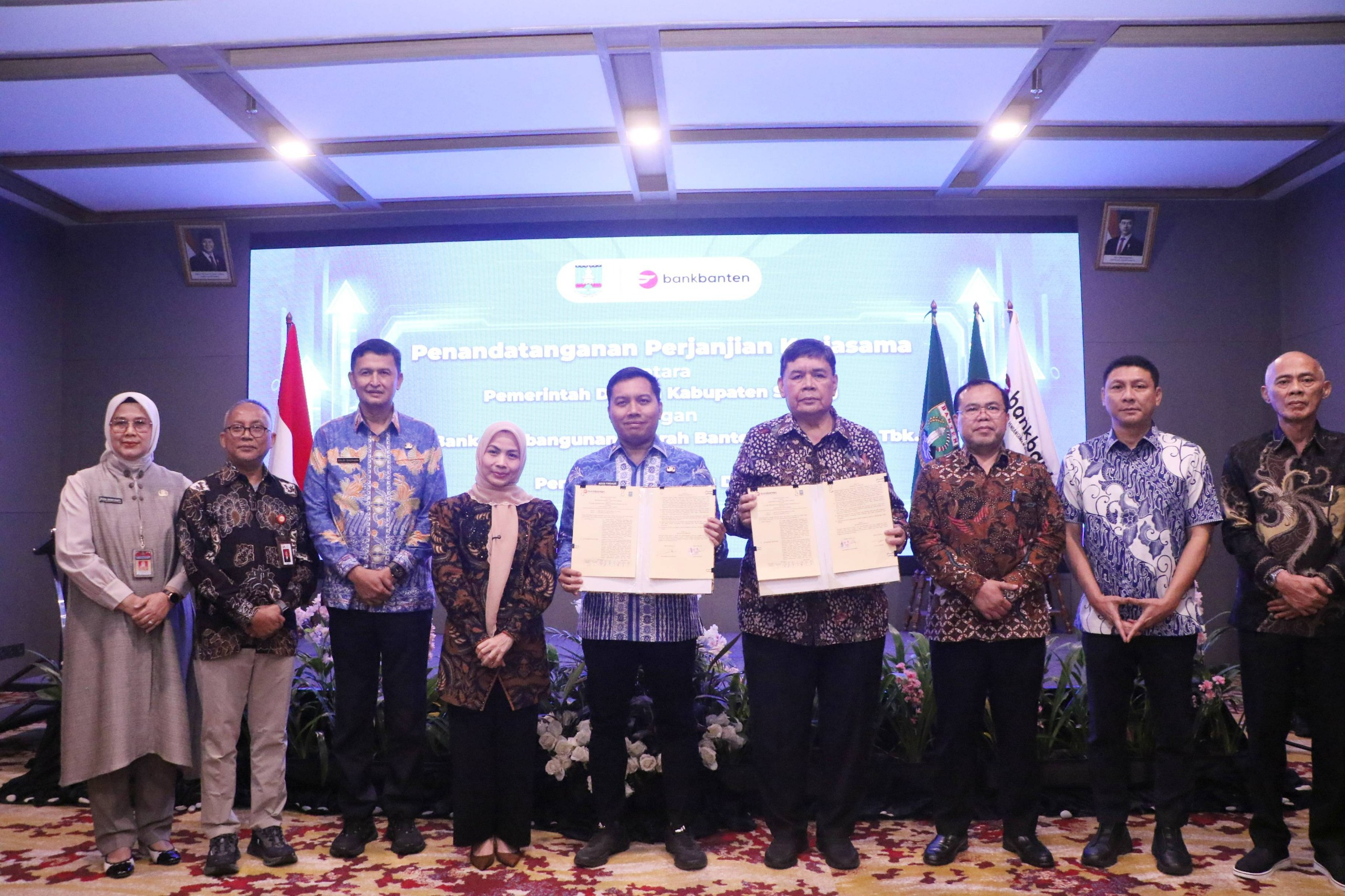 Penandatanganan dilakukan oleh Pelaksana Tugas (Plt) Kepala Badan Pengelolaan Keuangan dan Aset Daerah (BPKAD) Kabupaten Serang, Agus Firdaus dan Direktur Utama Bank Banten, Muhammad Bhustami disaksikan oleh Bupati Serang Ratu Rachmatuzakiyah, Kepala Kantor Otoritas Jasa Keuangan (OJK) Provinsi Banten, Adi Dharma, Sekda Kabupaten Serang Zaldi Dhuhana, Sekda Banten Deden Apriandi Hartawan, dan jajaran Komisaris dan Direkur Bank Banten di Aston Hotel Serang pada Kamis, 9 April 2026.