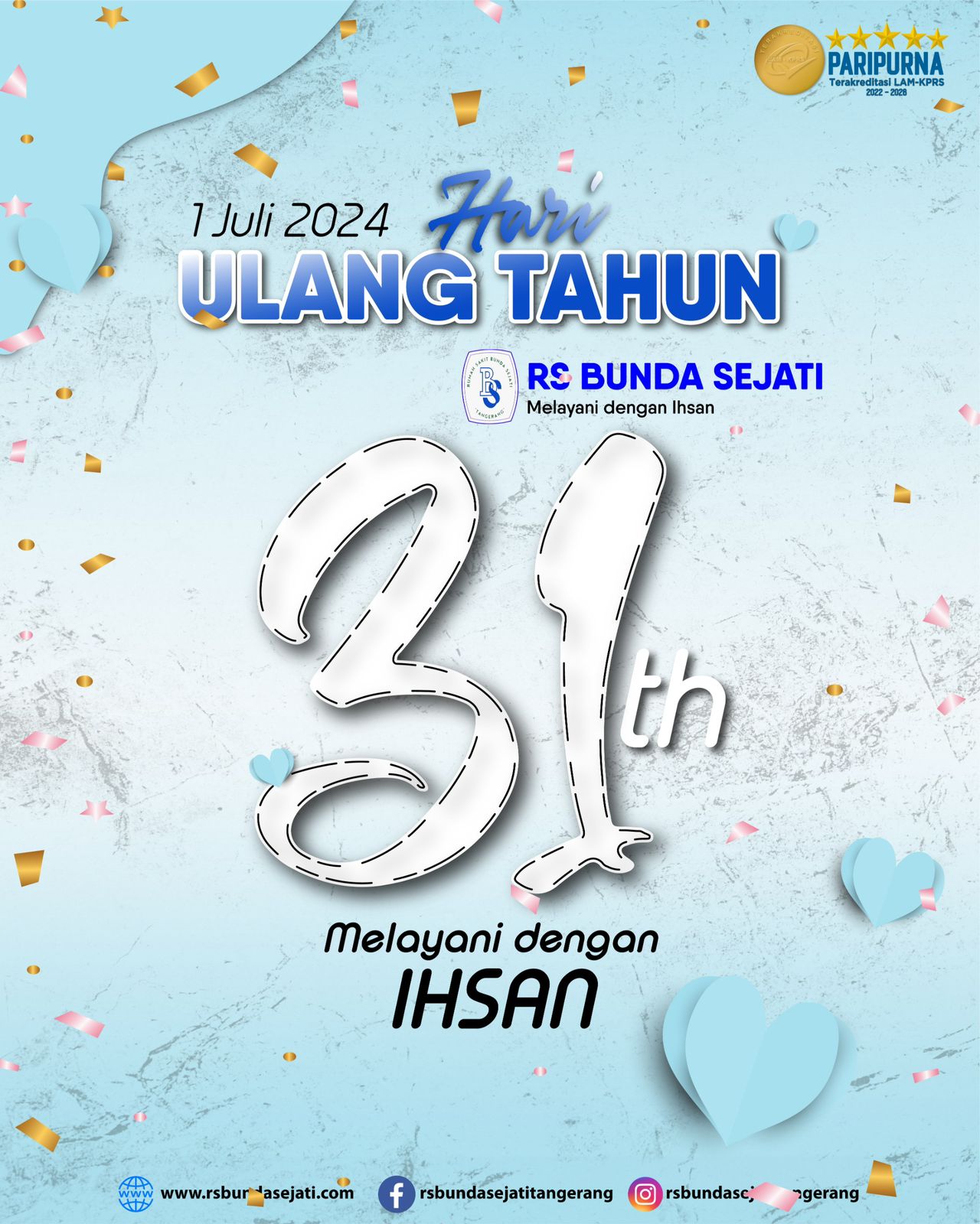 “Terima kasih kepada seluruh masyarakat yang telah memberikan kepercayaan, pada RS. Bunda Sejati,” ujarnya.