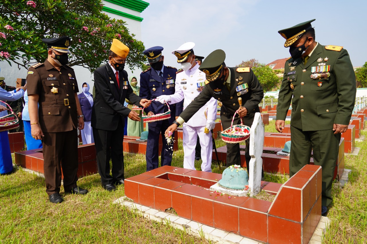 WANMEDIA.CO.ID, SERANG – Komandan Korem 064/MY Brigjen TNI Yunianto, S.Sos.,M.M pimpin Upacara Ziarah Nasional dalam rangka memperingati HUT TNI Ke 76 Tahun 2021, di Taman Makam Pahlawan (TMP) Ciceri Kota Serang, Senin (4/10/2021).