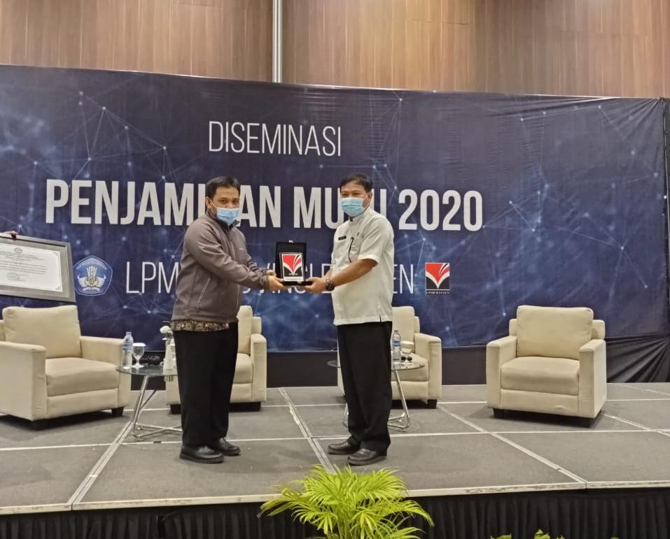 Penyerahan penghargaan tersebut diberikan langsung oleh kepala Lembaga Penjamin Mutu Pendidikan (LPMP) Provinsi Banten Iwan Kurniawan kepada Plt Kepala Dinas Pendidikan Drs. H Jamaluddin, M.Pd di Hotel Sol Marina Tangerang, Jumat (12/12/20).