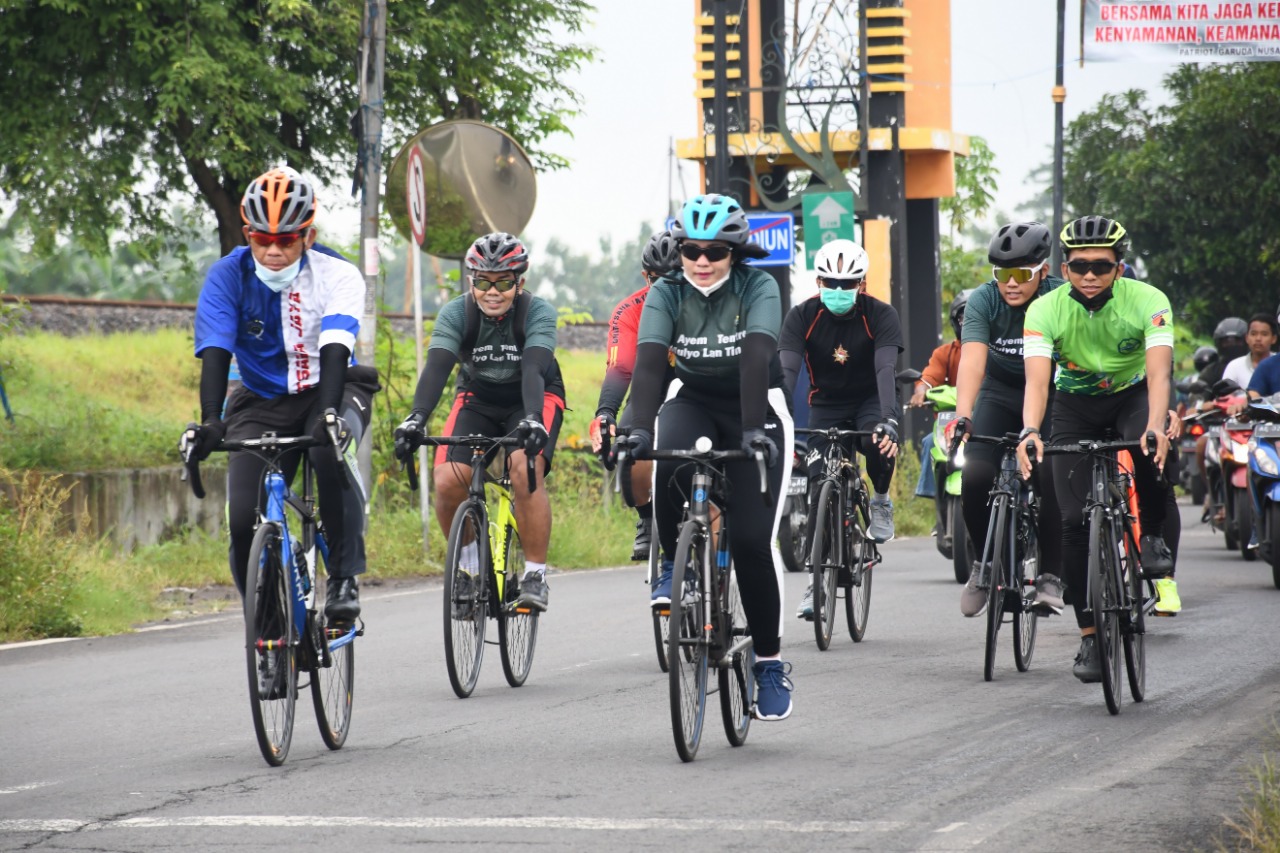 Hal itu seperti yang terlihat pada pagi ini, saat mereka melakukan kegiatan gowes barengnya dengan berkeliling Kota dan Kabupaten Madiun, Rabu (17/2/2021).