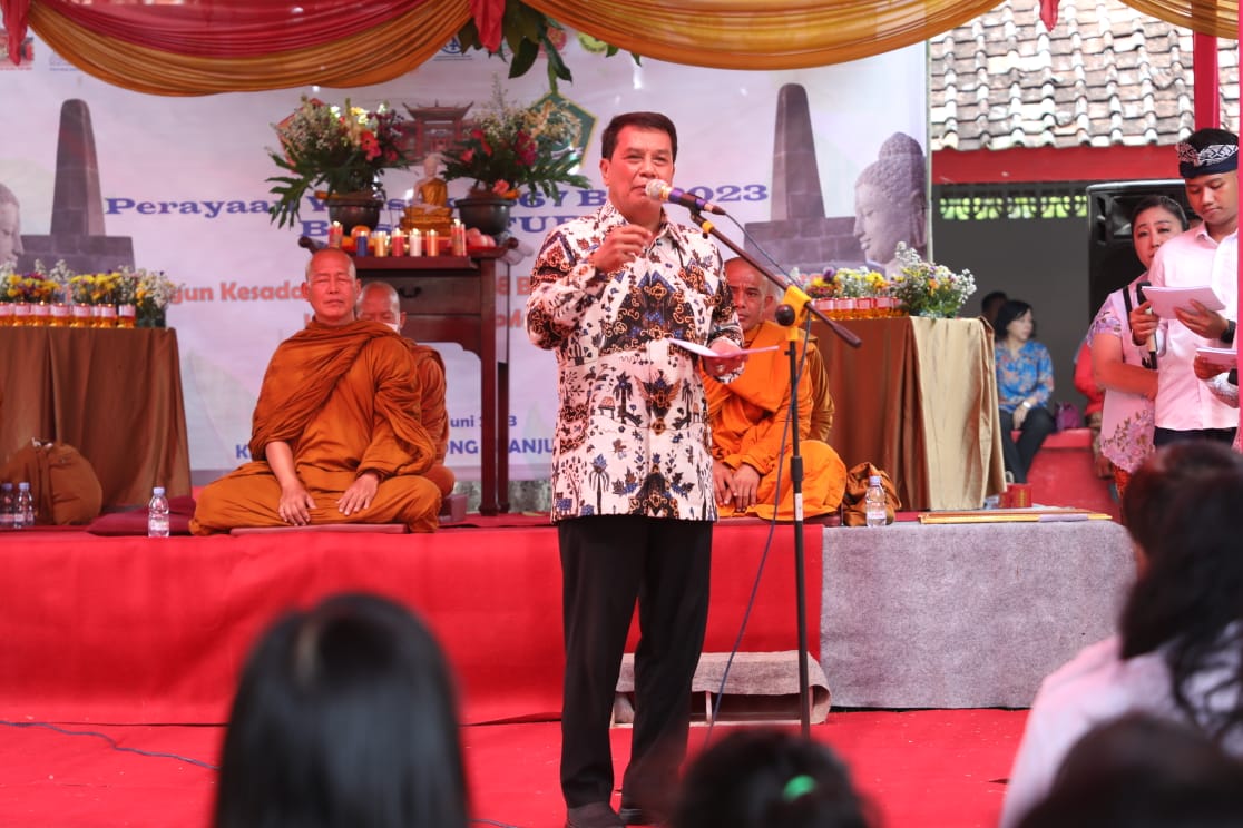 WANMEDIA.CO.ID, TANGERANG – Sekretaris Daerah Kabupaten Tangerang Moch. Maesyal Rasyid mengatakan kita harus menjaga harmonisasi dan kerukunan umat beragama di Kabupaten Tangerang. Hal tersebut dikatakan Sekda saat menghadiri Perayaan Waisak Umat Buddha Provinsi Banten dan peresmian Pilar Asoka yang digelar di Vihara Cosukong Tanjung Kait Kecamatan Mauk, Minggu, (18/6/23).