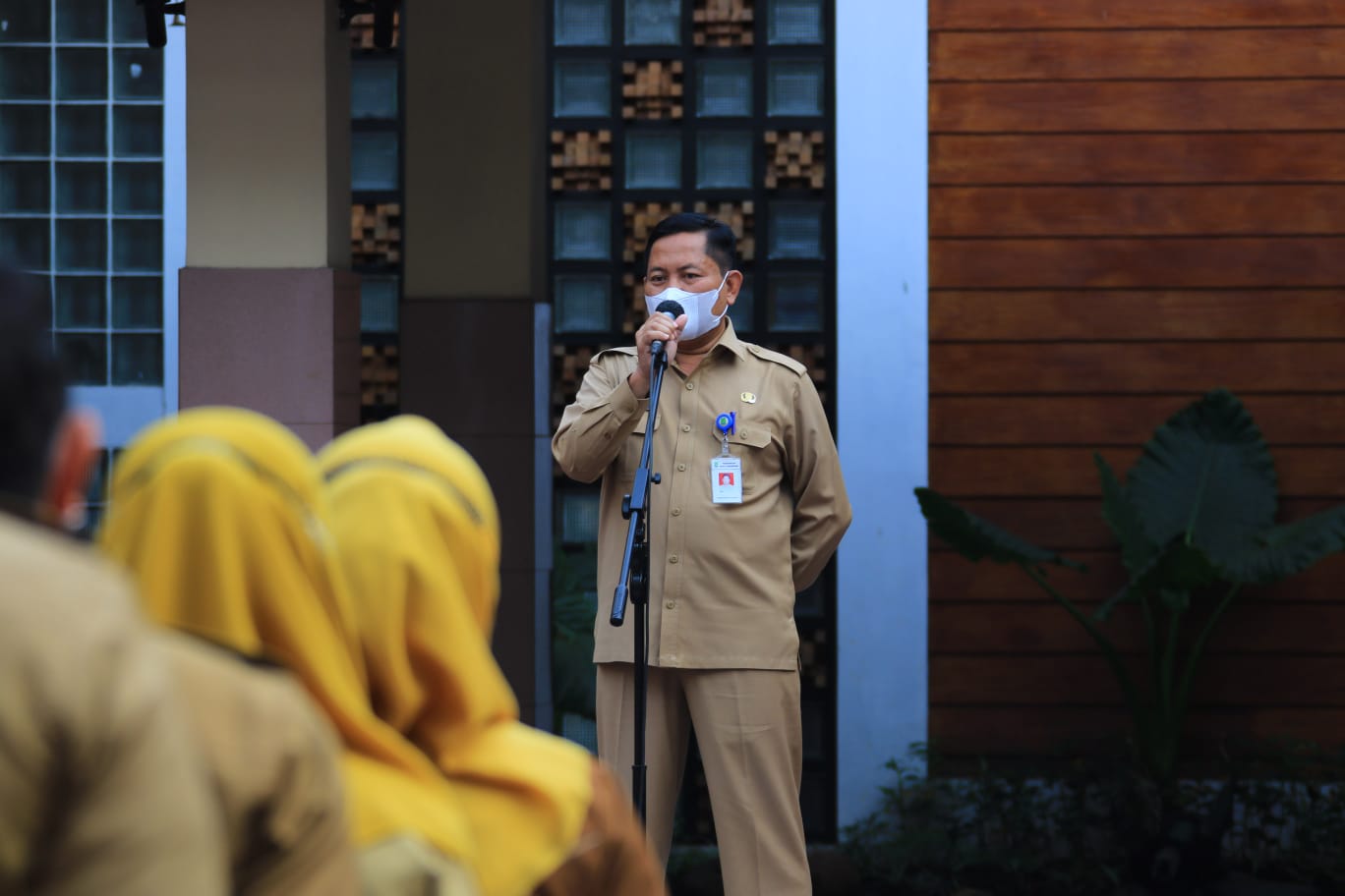“Walau kasus Covid-19 sudah mengalami penurunan, saya minta para pegawai untuk terus mensosialisasikan kepada masyarakat terkait pentingnya protokol kesehatan,”