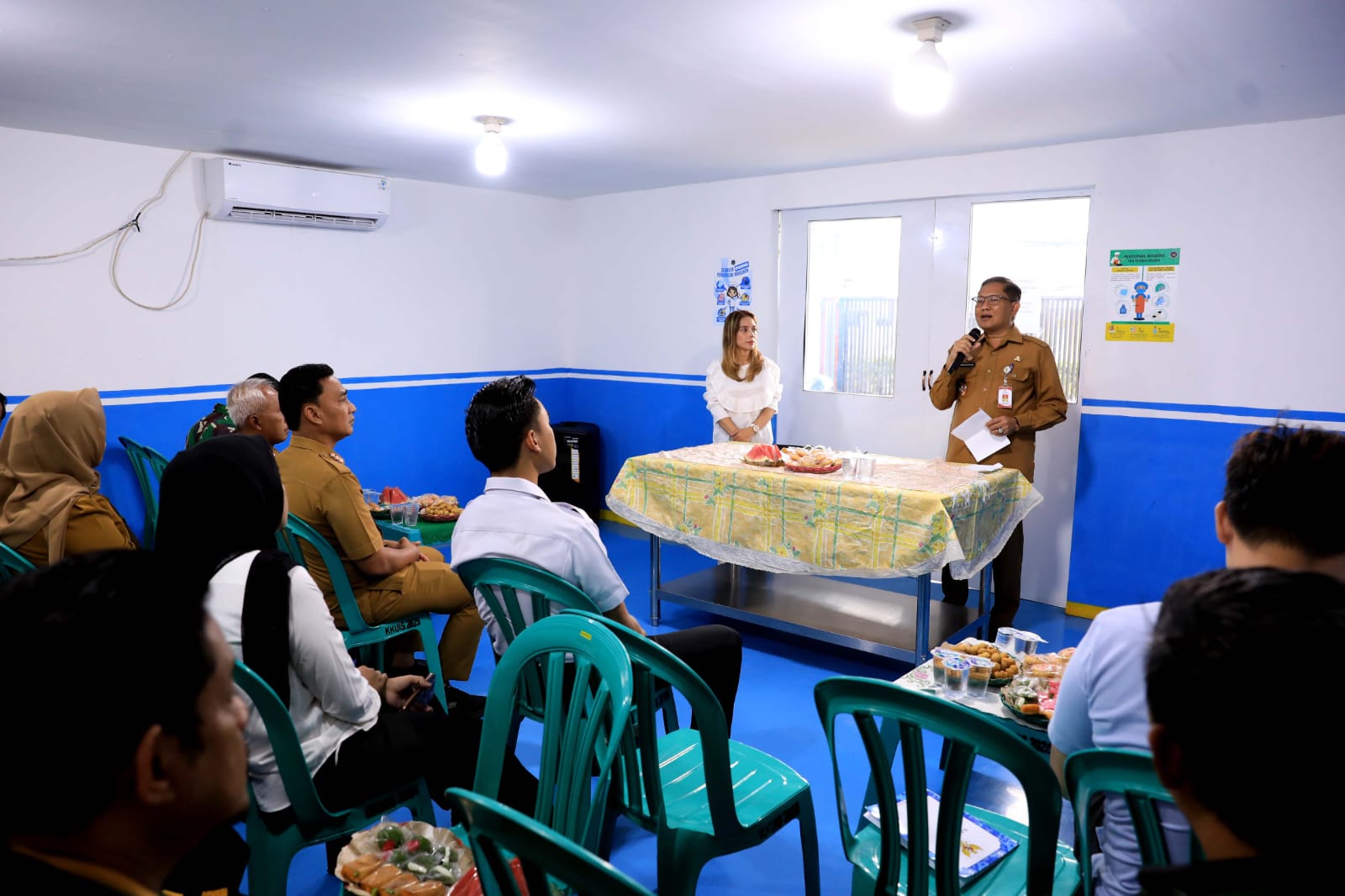 Usai prosesi peresmian dan pengguntingan pita, Sekda meninjau langsung berbagai fasilitas SPPG, mulai dari area penyimpanan bahan makanan, dapur masak, ruang pengemasan, hingga sarana pendukung lainnya seperti ruang istirahat relawan, musala, ruang rapat, ruang kerja ahli gizi, serta ruang administrasi.