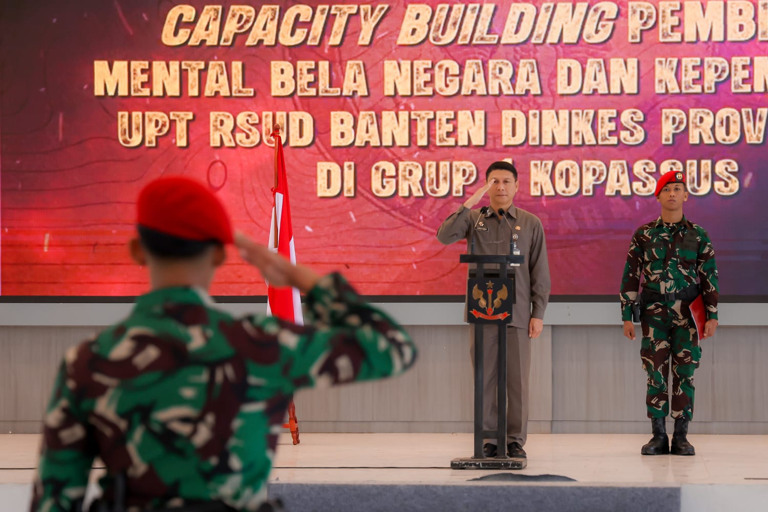 Demikian disampaikan Deden Apriandhi Hartawan, dalam sambutannya pada Capacity Building Pembinaan Mental Bela Negara dan Kepemimpinan UPT RSUD Banten, Dinas Kesehatan Provinsi Banten di Grup 1 Kopassus, Jalan Raya Serang, Cilegon, Taman Baru, Kota Serang, Selasa (5/8/2025).