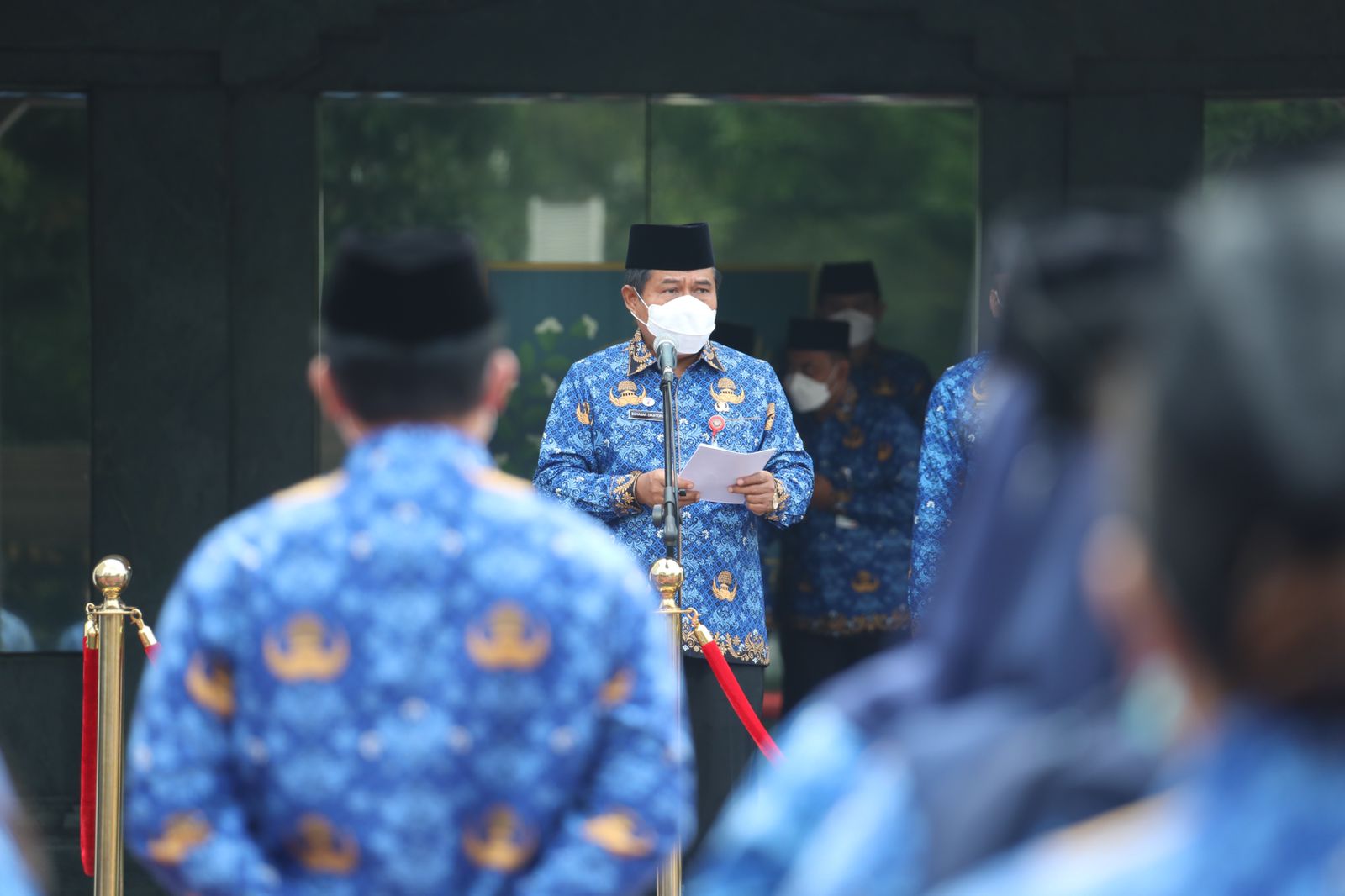 WANMEDIA.CO.ID, Jakarta– Sekretaris Jenderal (Sekjen) Kementerian Dalam Negeri (Kemendagri) Suhajar Diantoro memimpin langsung upacara peringatan Hari Kebangkitan Nasional (Harkitnas) ke-114 di lingkungan Kemendagri. Upacara berlangsung secara daring dan luring dari Plaza Gedung A Kantor Kemendagri, Jumat (20/5/2022). Suhajar maupun peserta upacara, kompak mengenakan seragam Korps Pegawai Republik Indonesia (Korpri).