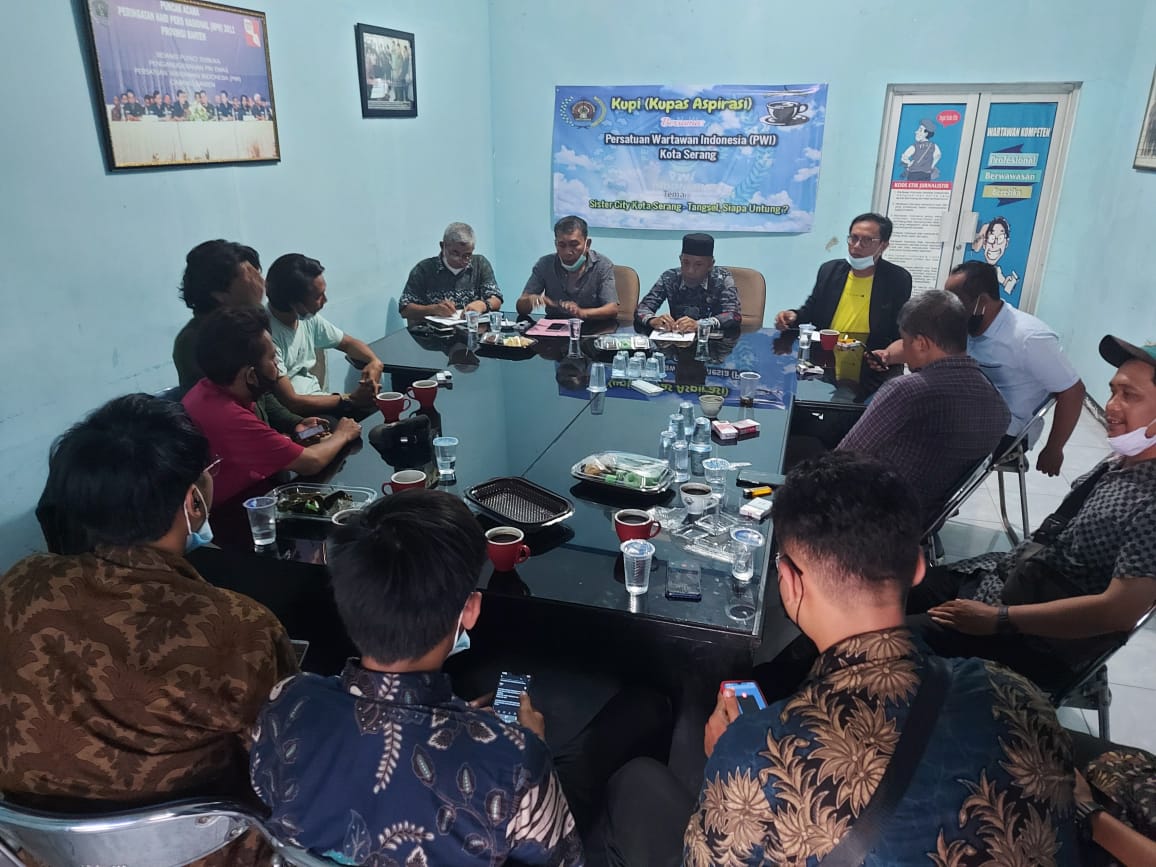 Hal tersebut terungkap dalam KUPI (Kupas Aspirasi) Bersama PWI Kota Serang, sebuah program diskusi mingguan PWI Kota Serang dalam membahas berbagai permasalahan di Kota Serang, yang kali ini mengambil tema “Sister City Kota Serang-Tangsel, Siapa Untung?”. Kegiatan ini dihadiri Asisten Daerah (Asda) I Kota Serang, Anton Gunawan, Kepala Dinas Lingkungan Hidup (DLH) Kota Serang, Ipiyanto dan Sekretaris Dinas Komunikasi dan Informatika Kota Serang, Tendian, sebagai narasumber.