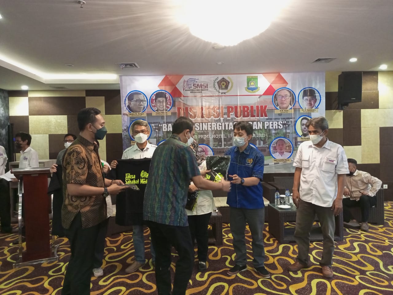 Saat Kepala kejaksaan Negeri Kota Tangerang I Dewa Gede Wirajana bersama Kasi Intel R. Bayu Probo Sutopo S.H., membagikan Baju Kaos berwarna hitam Bertuliskan ‘Jaksa Sahabat Media’ yang diberikan secara simbolik kepada undangan perwakilan organisasi Media yang hadir.