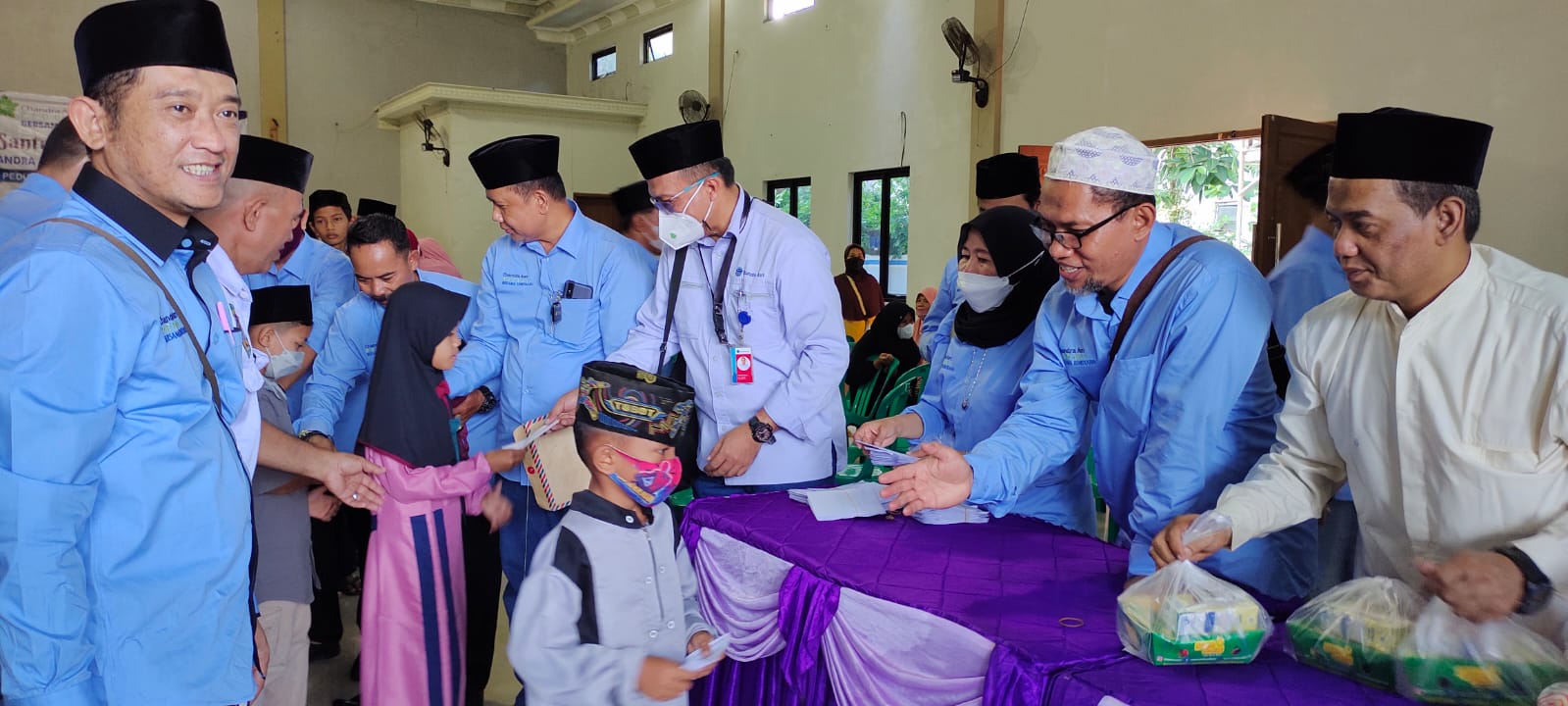 Kegiatan pembagian santunan kali ini dibagi pelaksanaannya di dua tempat, pertama pagi hari di Kelurahan Gunungsugih Cilegon, dan sore harinya sambil berbuka puasa bersama anak-anak dihadirkan di Griya Amoeng di Anyer.