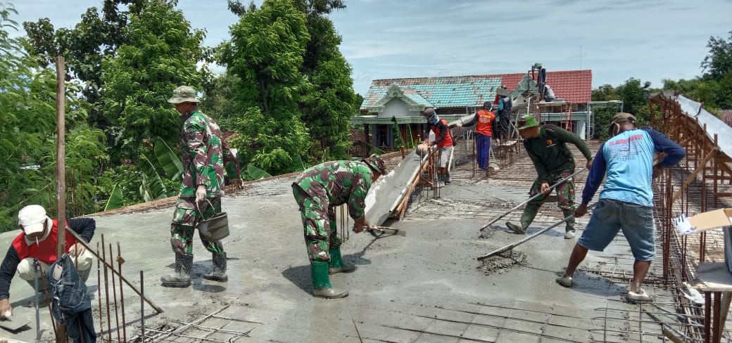 Anggota Koramil 0802/03 Babadan bersama masyarakat Dusun Sido Mulyo melakukan karya bakti pengecoran lantai tiga pondok pesantren Tartilul Qur’an AD DASUKI di Dusun Sido Mulyo, Desa Cekok, Kecamatan Babadan, Kabupaten Ponorogo.