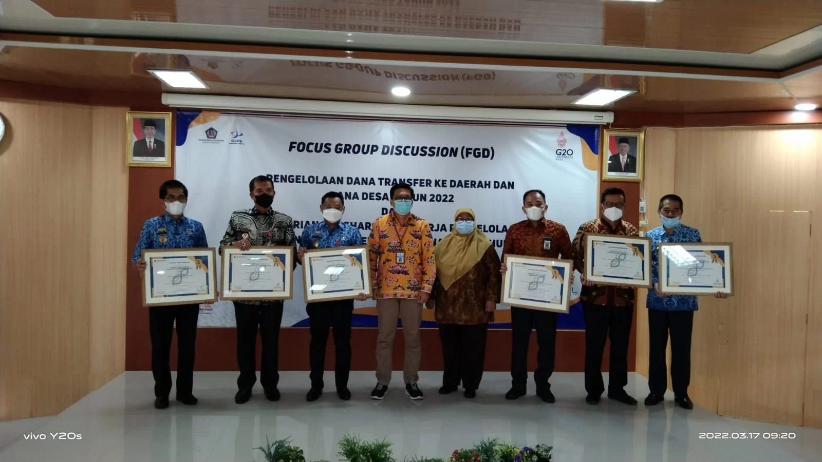 Penyerahan penghargaan kinerja pengelolaan Dana Alokasi Khusus (DAK) Fisik dan kinerja Pengelolaan Dana Desa Tahun 2021 lingkup wilayah Provinsi Lampung dilaksanakan di aula “Semergow” Kanwil DJPb Provinsi Lampung.