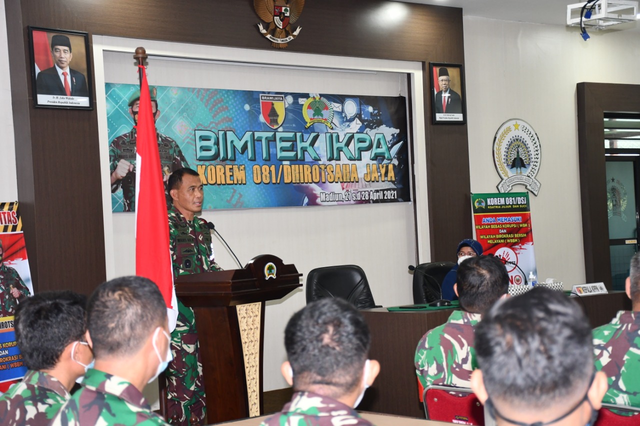 Bimtek IKPA yang diselenggarakan bertujuan untuk memfasilitasi dan sebagai terobosan demi kemajuan satuan Korem 081/DSJ, agar ke depannya dapat memperoleh nilai IKPA yang terbaik. (Saripudin)