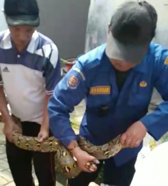 “Ular Sanca itu berada di atas plafon rumah milik Ibu Nina warga kampung Lengkong Kulon,” ujar Munir.