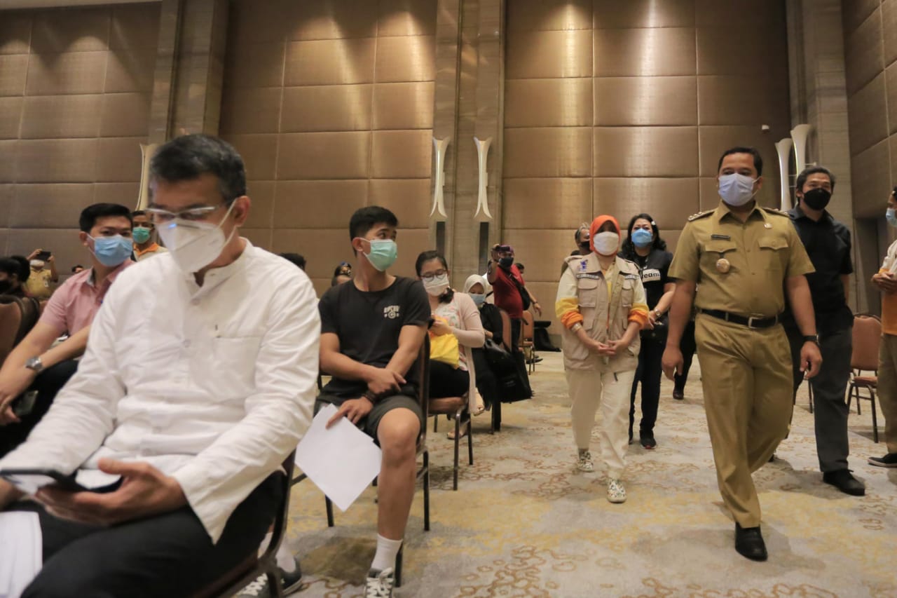 WANMEDIA.CO.ID, KOTA TANGERANG – Wali Kota Tangerang H. Arief R. Wismansyah monitoring pelaksanaan vaksinasi tahap 2 dengan sasaran para pedagang atau pekerja yang melakukan pelayanan langsung kepada masyarakat, kegiatan ini dilaksanakan di Ballroom Hotel Novotel Tangerang City Mall, Senin (1/3/2021).