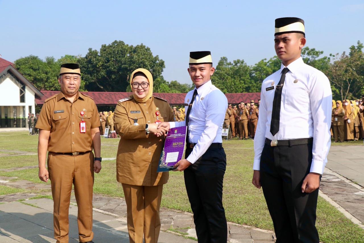Pada Apel Senin pagi tersebut juga dirangkaikan dengan penyerahan Surat Keputusan Pengangkatan CPNS dari lulusan Institut Pemerintahan Dalam Negeri Formasi Tahun Anggaran 2025 yang berlaku per 1 Oktober 2025 kepada 3 orang.
