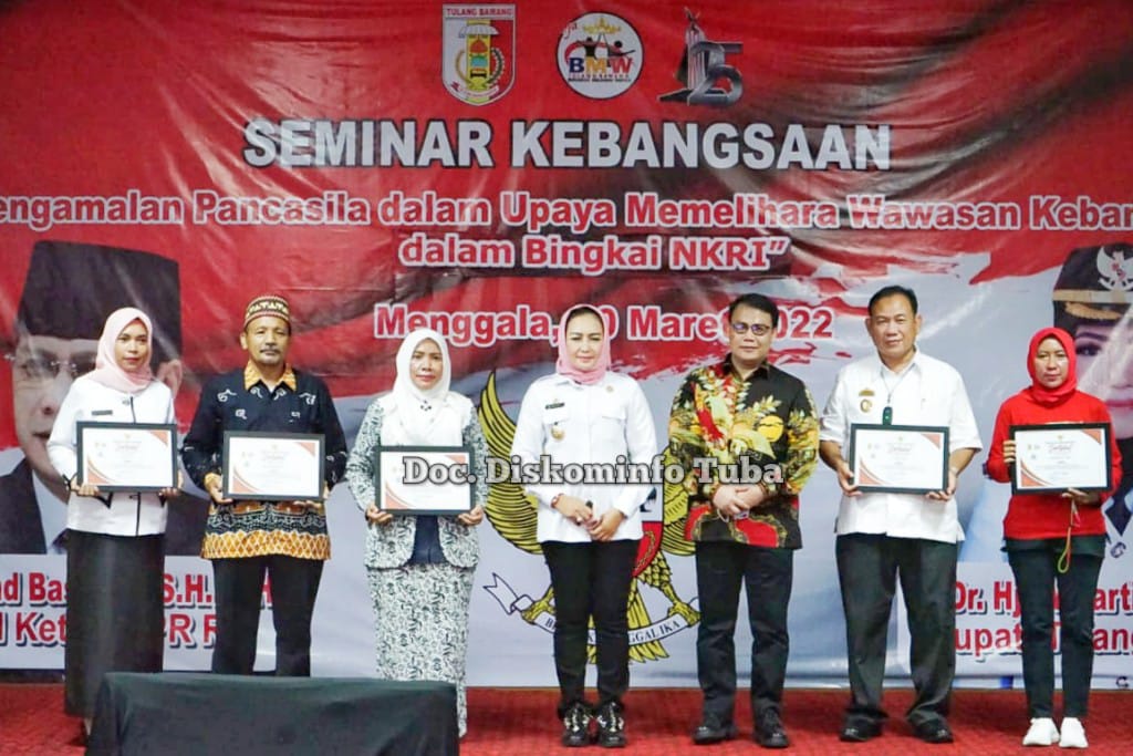 WANMEDIA.co.id, TULANGBAWANG-Pemkab Tulang Bawang menggelar seminar kebangsaan bertema ‘Pengamalan Pancasila Dalam Upaya Memelihara Wawasan Kebangsaan Dalam Bingkai NKRI’. Bertempat di Aula Islamic Center Menggala, Kabupaten Tulang Bawang, Lampung kegiatan ini digelar guna memperkuat nilai persatuan dan kesatuan, serta menanamkan nilai Pancasila.
