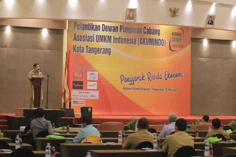 WANMEDIA.co.id, KOTA TANGERANG–Asosiasi Usaha Mikro Kecil Menengah (UMKM) Indonesia (Akumindo) gelar pelantikan Dewan Pimpinan Cabang (DPC) Akumindo Kota Tangerang yang dilaksanakan di Horizon Grand Serpong Hotel, Kecamatan Pinang, Selasa (25/5/21).